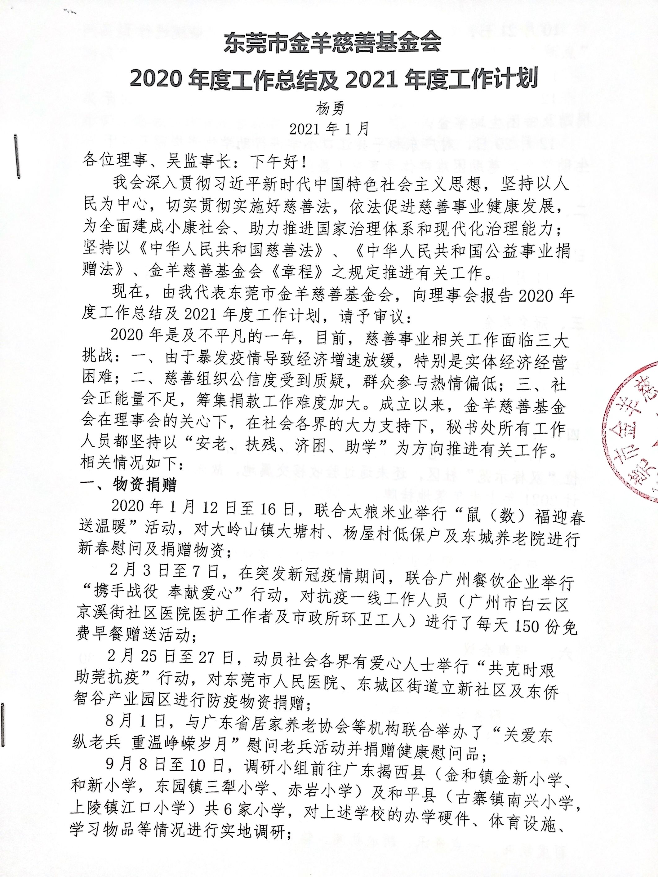 东莞市金羊慈善基金会2020年度工作报告新闻来源:    发布时间:2021/1/13 10:15:32    浏览量:
