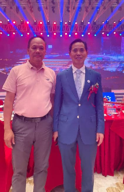 众一慈善党支部书记、会长郑乃清与广东三正集团董事长莫浩棠(右一)合影